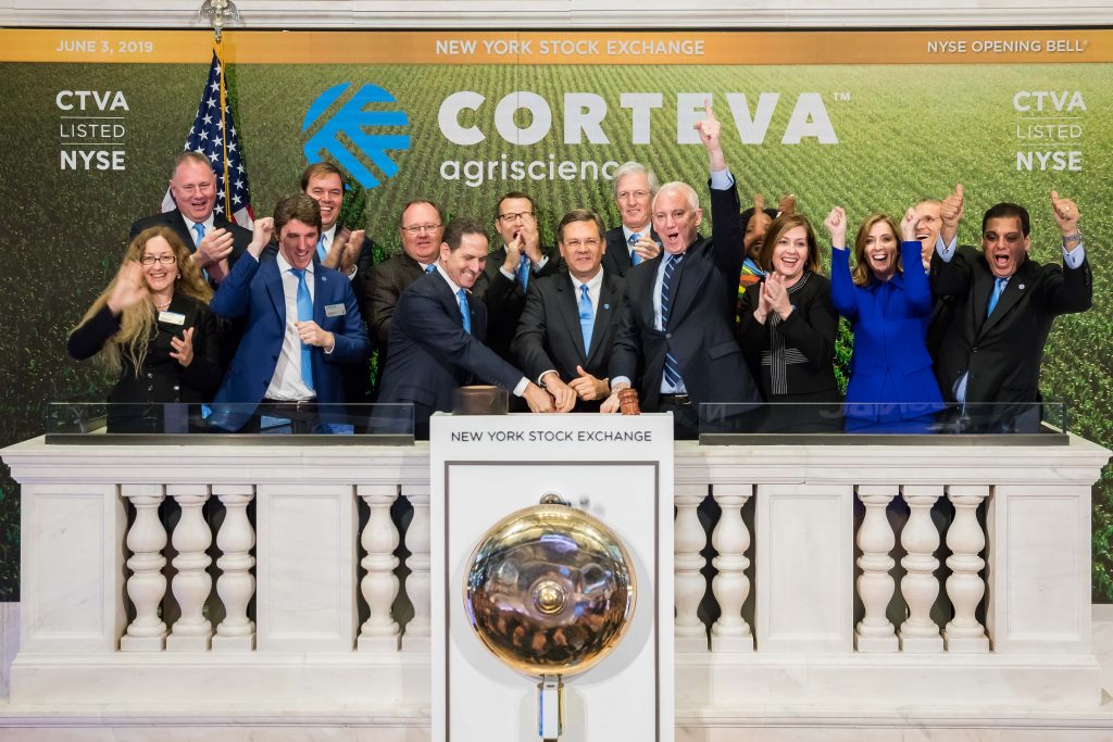 Rozdelenie kmeňových akcií Cortevy bolo dokončené 1. júna 2019. Každý akcionár koncernu DowDuPont získal namiesto troch akcií tohto koncernu držaných ku dňu 24. mája 2019, keď sa skončilo obchodovanie, jednu kmeňovú akciu Cortevy. Zároveň akcionári dostanú ešte hotovostnú výplatu za zlomkové akcie Cortevy. Kmeňové akcie novej spoločnosti sa na newyorskej burze cenných papierov (NYSE) začnú pod označením „CTVA“ obchodovať už dnes.