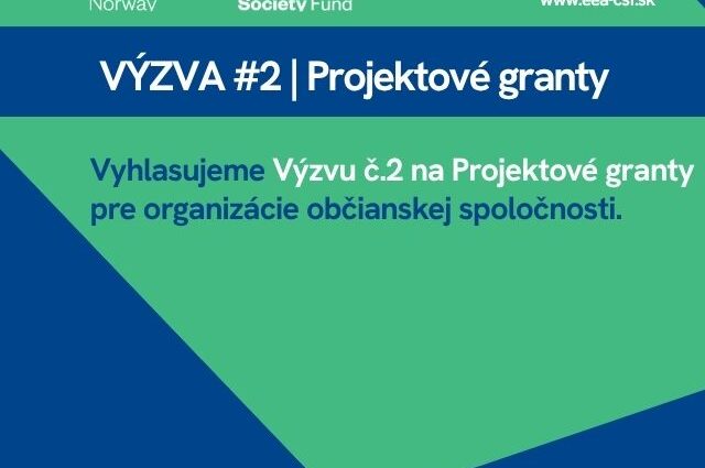 Aj preto v rámci programu EEA Civil Society Fund Slovakia vyhlasujeme Výzvu č. 2 na projektové granty, určenú organizáciám občianskej spoločnosti na Slovensku.