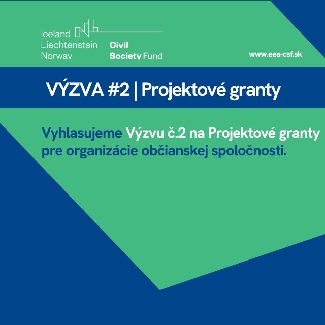 Aj preto v rámci programu EEA Civil Society Fund Slovakia vyhlasujeme Výzvu č. 2 na projektové granty, určenú organizáciám občianskej spoločnosti na Slovensku.