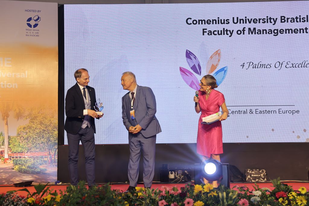 Bratislava 1. decembra 2025: Fakulta managementu Univerzity Komenského v Bratislave (FM UK) dosiahla významný medzinárodný míľnik a získala štyri palmy excelentnosti v globálnom rebríčku Eduniversal 2025. Zaradila sa tak medzi najlepšie hodnotené biznis školy sveta. Dekan fakulty Peter Štarchoň prevzal ocenenie na gala podujatí v dňoch 10. – 13. novembra 2025 v Indore v Indii.