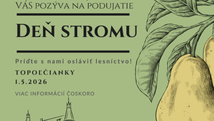 LESY SR, š. p., pozývajú verejnosť na jubilejný 25. ročník podujatia Deň stromu, ktorý sa uskutoční 1. mája 2026 v parku v Topoľčiankach. Podujatie ponúkne celodenný program pre rodiny s deťmi, odbornú aj zážitkovú formu poznávania lesa a pripomenie jeho význam pre spoločnosť. Tento ročník sa nesie v duchu príbehu hrušky planej a symboliky putifárovej hrušky, ktorá prepája históriu, prírodu a hodnoty lesníctva.